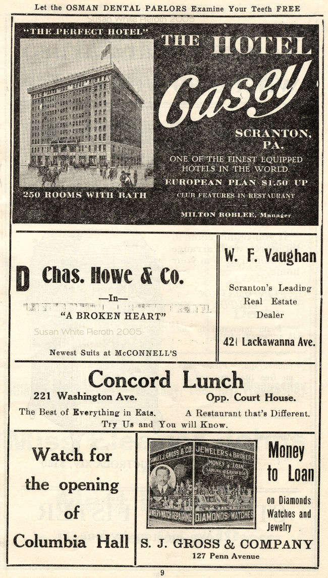 Hotel Casey; Concord Lunch; S. J. Gross |