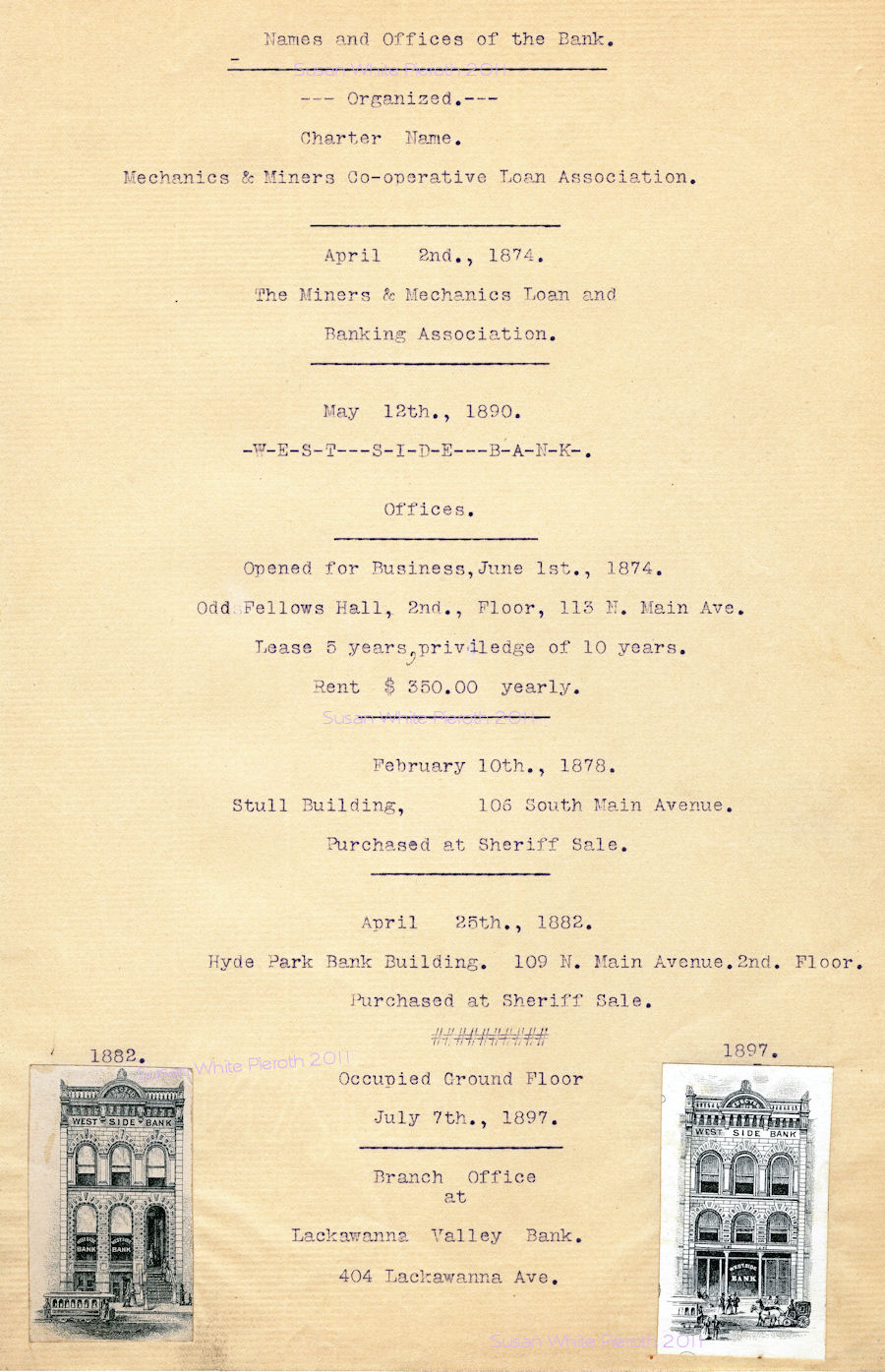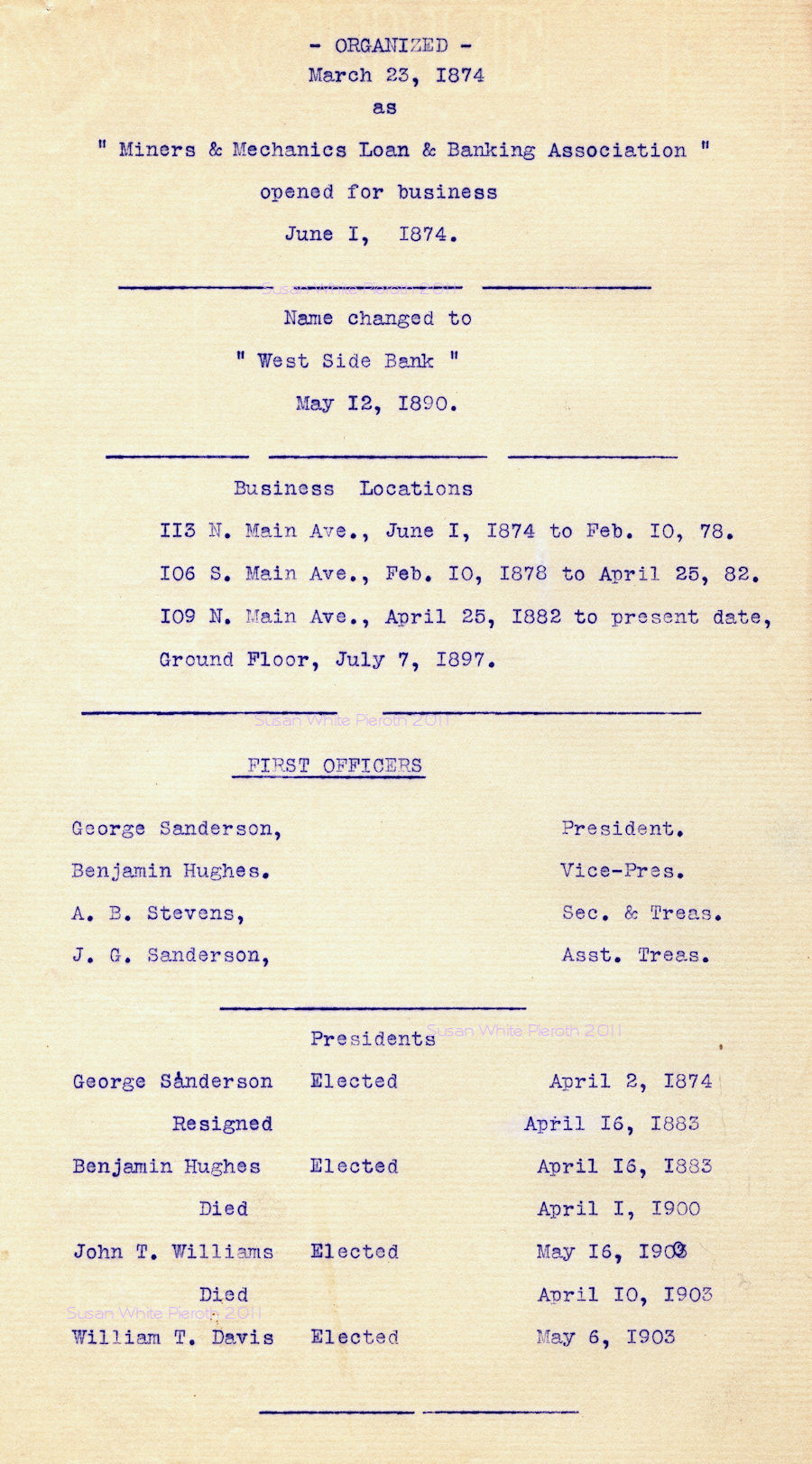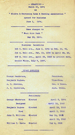 May 12th, 1890 name changed to West Side Bank