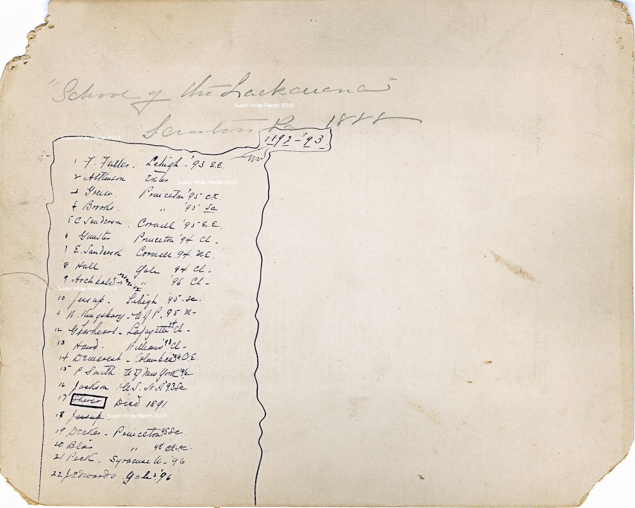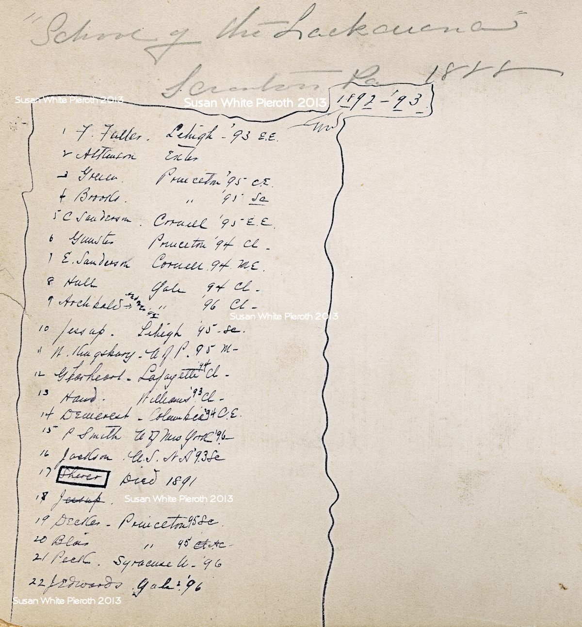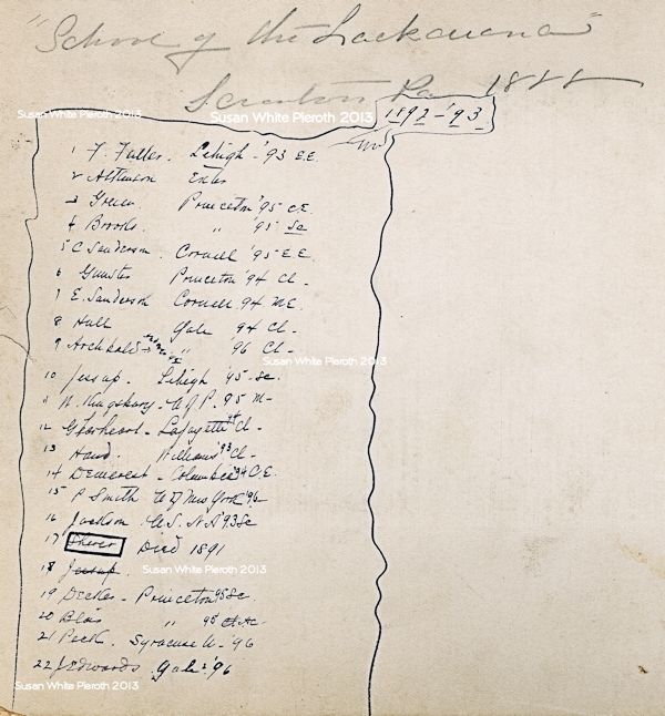 This photo, taken in 1888, is of male students (females also attended) attending "School of the Lackawanna." The name did not always include "the."